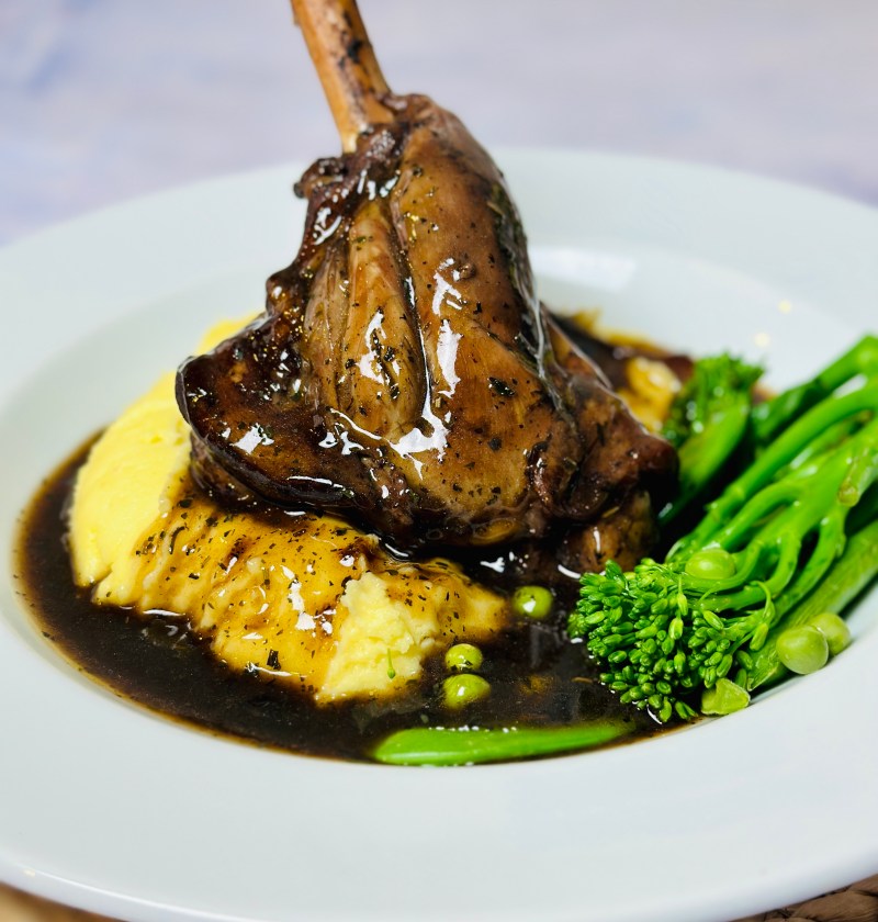 Tender lamb shanks slow-cooked to perfection, served with a creamy mash and a delicious mint infused gravy.