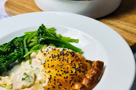 This Chicken & Chorizo Pie is rich, comforting, and full of flavour. Tender chicken and smoky chorizo are cooked with mushrooms, garlic, and white wine in a creamy sauce, then baked in golden, buttery pastry. A hearty, indulgent dish and a firm family favourite — perfect for cosy nights in.