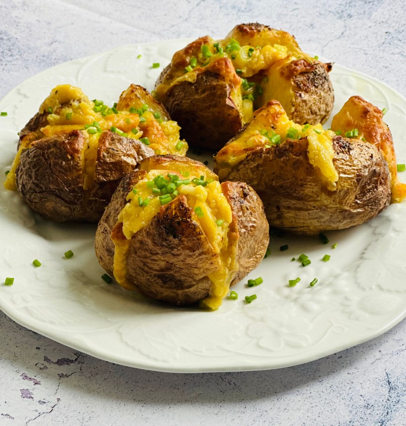 This is a deliciously comforting jacket potato – a super tasty side or could even be served as a main!