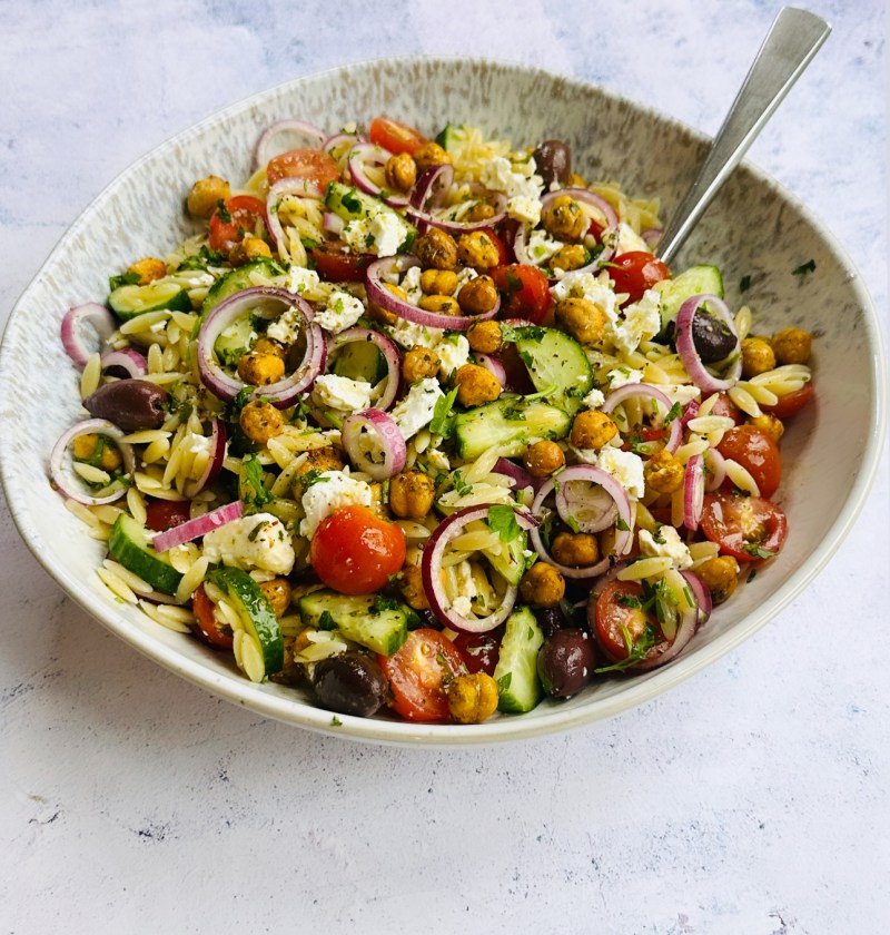 Light, fresh, and bursting with Mediterranean flavour, this vibrant orzo pasta salad is perfect for lunch, picnics, or a colourful side dish. Tender orzo is tossed with crisp cucumber, juicy cherry tomatoes, sweet red onion, hearty chickpeas, briny olives, and creamy cubes of feta cheese. A zesty homemade lemon and dill dressing ties it all together, adding brightness and freshness in every bite. Finished with fragrant basil and extra dill, this easy salad is a delicious make-ahead option for warm …