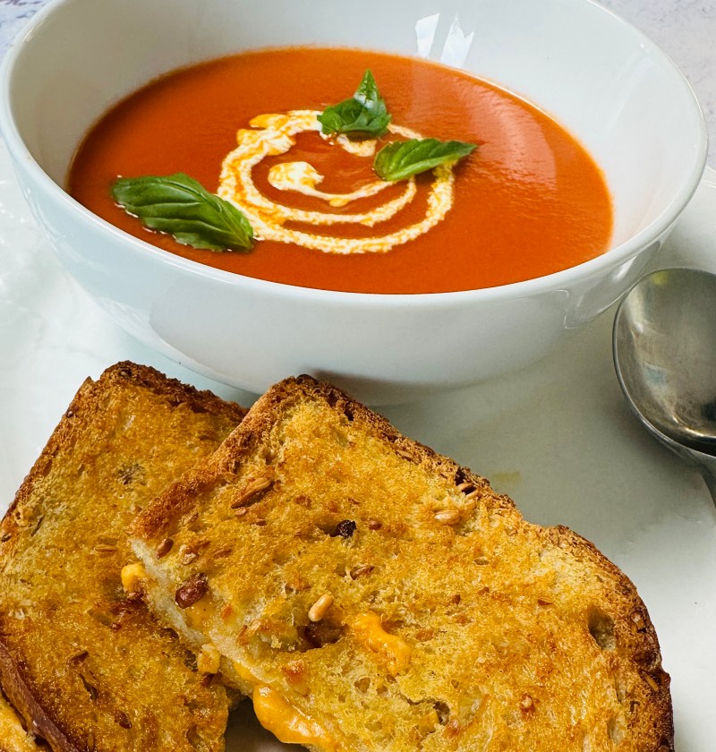 An extremely delicious tomato soup that brings back memories of childhood! You better make lots as you’ll certainly be going back for seconds. The grilled cheese sandwiches compliment the soup perfectly.