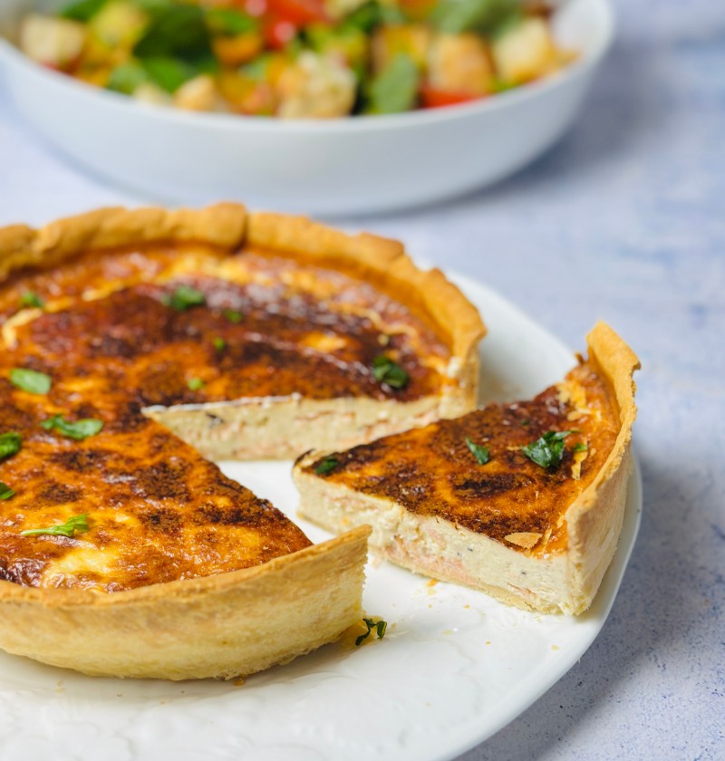 This stunning smoked salmon tart is a true showstopper, packed with rich, indulgent flavours. The smoked salmon is layered with creamy horseradish and nutty Gruyère cheese, all nestled in a buttery, golden pastry. Perfect for a brunch, light lunch or elegant starter, it’s a beautifully balanced dish that’s as delicious as it is impressive.