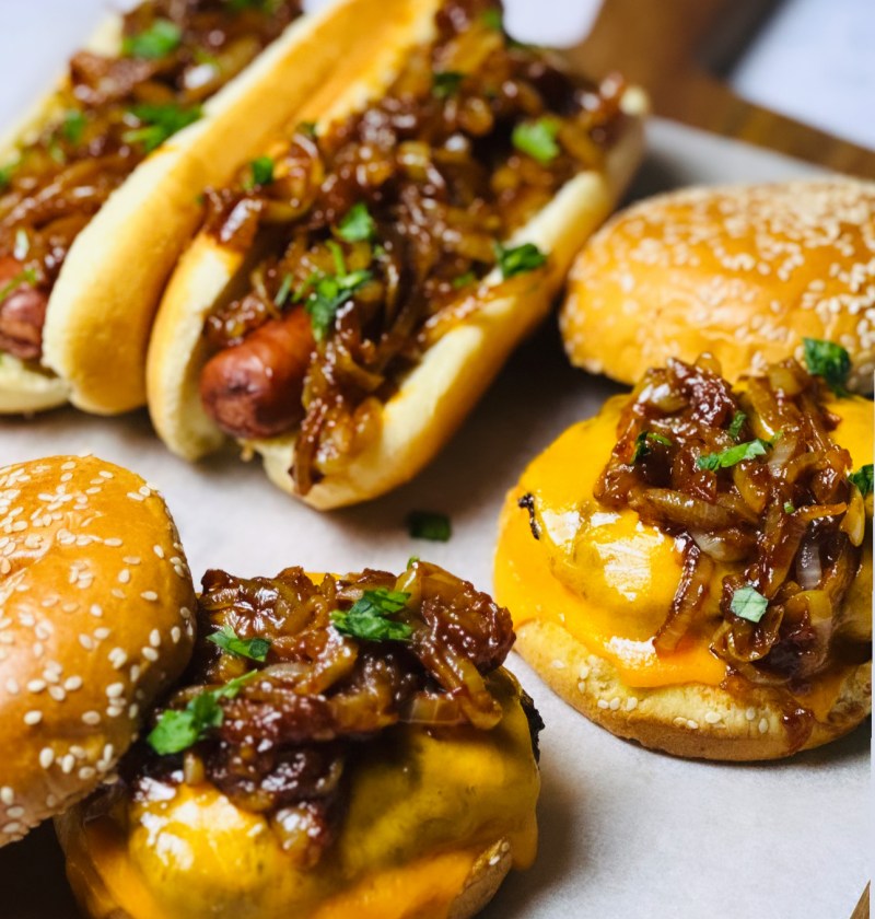 These have to be the best fried onions for burgers and hot dogs – the perfect accompaniment for any BBQ. They are caramelised, sweet, tangy and full of flavour – they are always a great hit with family and friends.