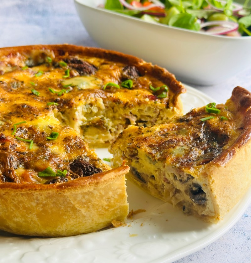 Rich, savoury and packed with flavour, this quiche combines creamy Stilton, smoky bacon, and earthy mushrooms in a golden, buttery pastry – perfect warm or cold! If blue cheese doesn’t take your fancy then you can use cheddar or any other hard cheese.