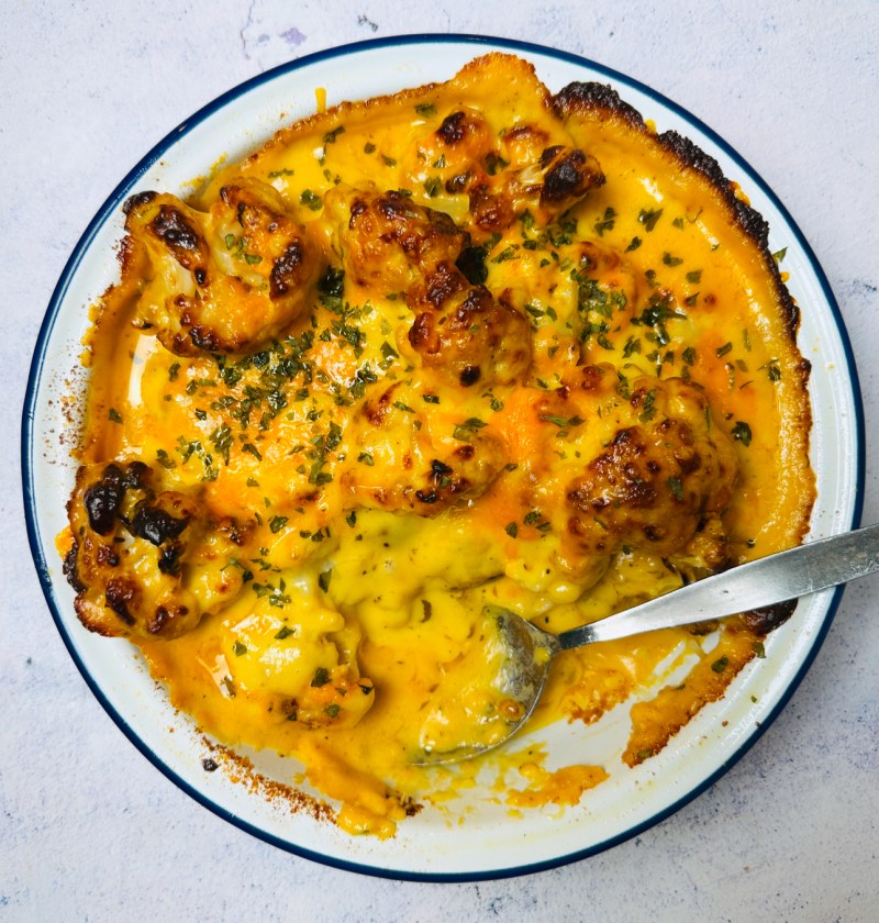 Creamy, golden, and irresistibly cheesy—this roasted cauliflower cheese is loaded with the rich, tangy flavours of Red Leicester, sharp Cheddar, and nutty Gruyère. The perfect comfort food as a side or I could just eat it on its own!