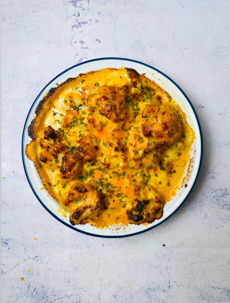 - Place the cauliflower into a baking dish, sprinkle over the Gruyère followed by the Red Leicester. Bake at 180°C/160°C for 30 minutes until the cheese is melted, and cauliflower is bubbly and golden. Allow to rest for 5 minutes then serve - enjoy!