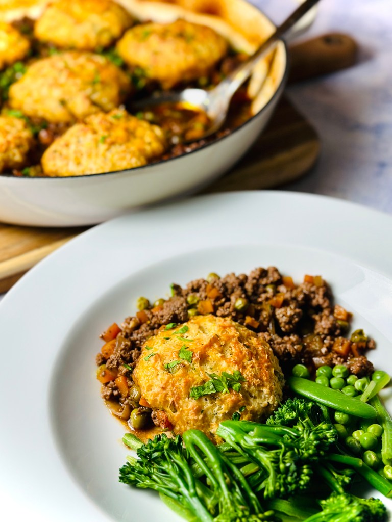 This comforting Mince with Cheesy Horseradish Dumplings is the perfect hearty dish for chilly evenings. Rich, savoury mince is simmered with vegetables and herbs to create a deeply flavourful base, then topped with soft, fluffy dumplings made with mature cheddar and a hint of horseradish for an irresistible kick.