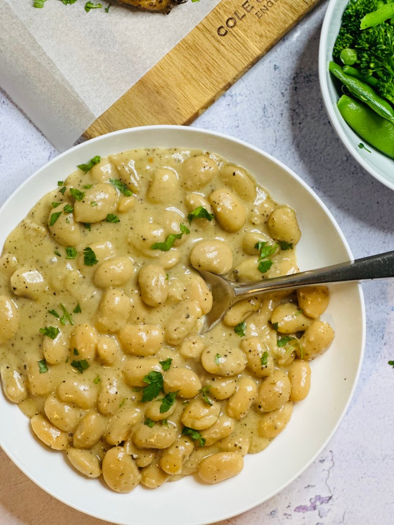 Creamy butter beans coated in a deliciously rich sauce of melted Parmesan and cracked black pepper. This is a quick and flavourful dish, perfect as a side or a light main.