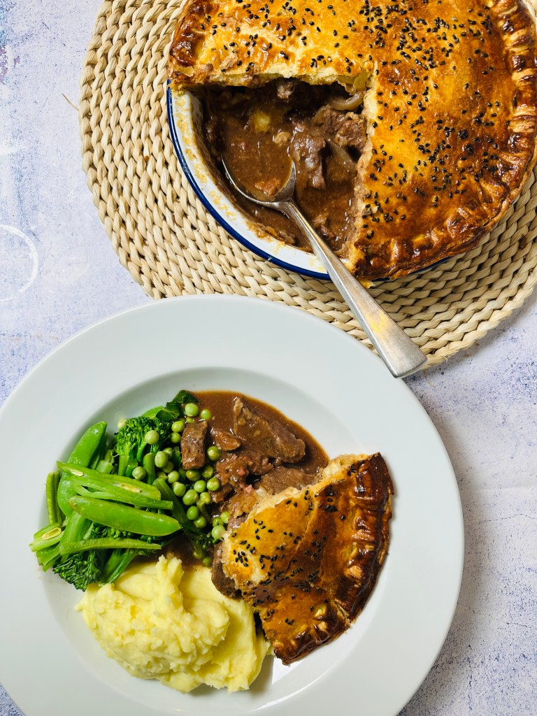 This is a wonderfully delicious pie full of rich flavours – the perfect pie for chilly weather! One of the good things about this recipe is that you have extra gravy for serving!